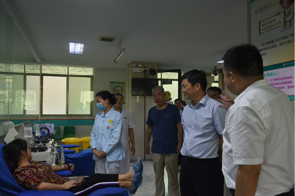 近日,天壇生物黨委書記、總經(jīng)理付道興,天壇生物副總經(jīng)理、武漢血制公司總經(jīng)理何彥林一行來到鄖陽血漿站調(diào)研。付道興一行實地勘察了鄖陽漿站新站選址,參觀了漿站采漿流程,聽取了漿站工作匯報并慰問了一線工作人員。
