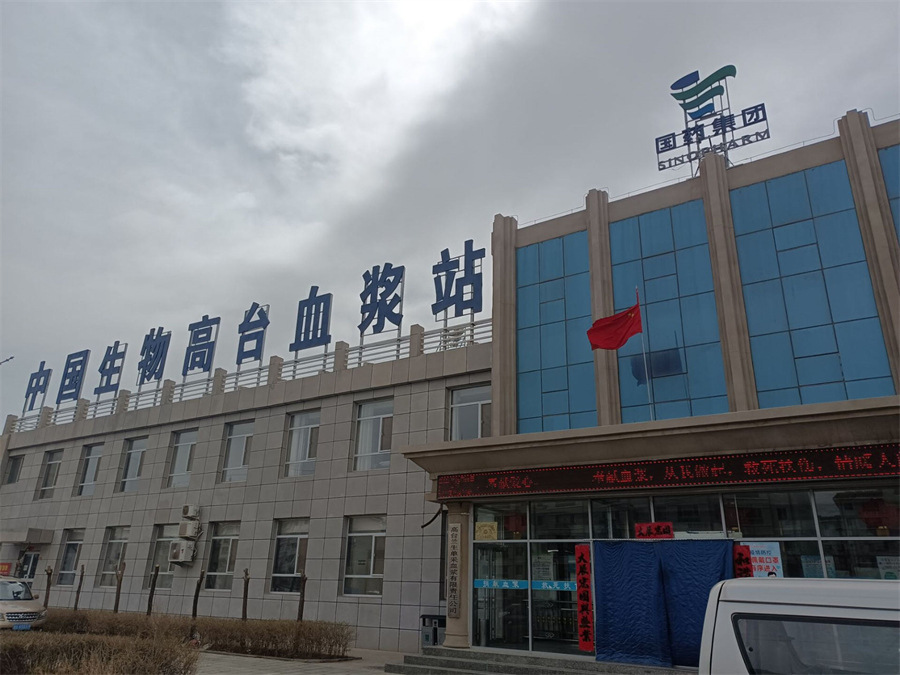 始終堅持“關(guān)愛生命,呵護健康”企業(yè)理念,緊抓“三化管理”, 建設(shè)“三型漿站”,發(fā)揮漿站“四個點”作用中國生物高臺血漿站,隸屬于國務院國資委直接管理的中央企業(yè)--中國醫(yī)藥集團有限公司,于2013年獲得甘肅省衛(wèi)生健康行政部門批準,由國藥集團蘭州生物制藥有限公司設(shè)置,2016 年1月獲得《單采血漿許可證》執(zhí)業(yè)采漿。血漿站位于甘肅省張掖市高臺縣巷正路69號,采漿區(qū)域為:高臺縣、臨澤縣、肅南裕固族自治縣(不含皇城鎮(zhèn))、甘州區(qū)(不含花寨鄉(xiāng)及安陽鄉(xiāng))、酒泉市、嘉峪關(guān)市。